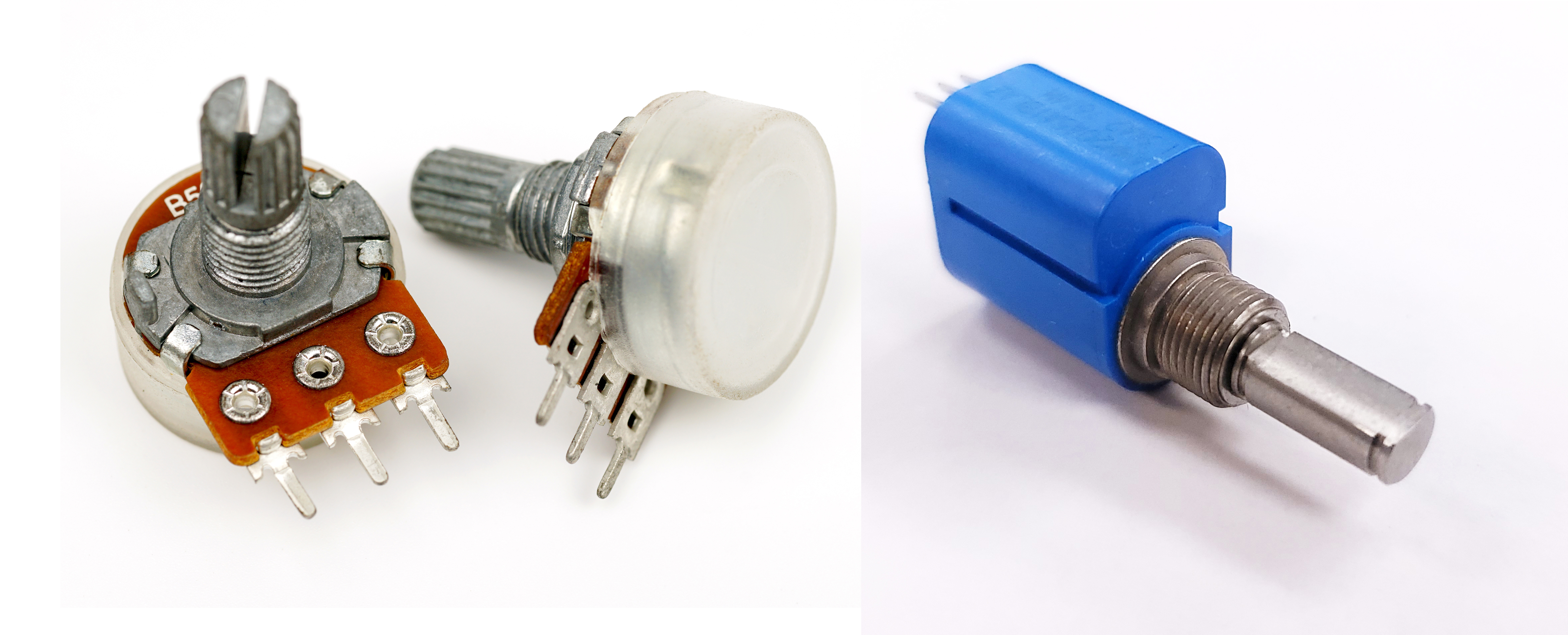 Requirements for accuracy, flexibility and durability will determine whether contact (left) or non-contact potentiometers (right) are a better fit for a given application.