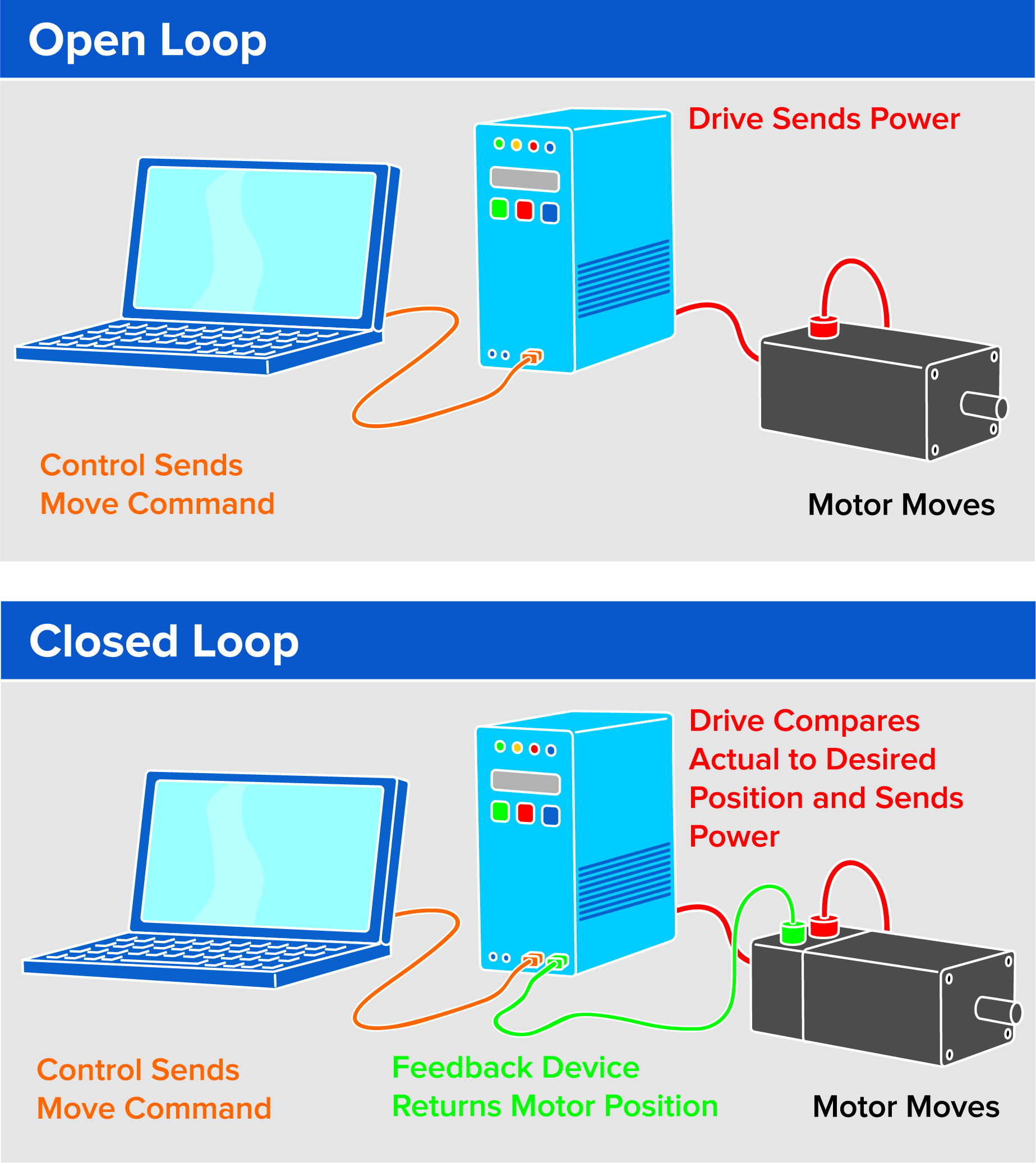 Figure 3: Many of today’s motors rely on closed feedback loops that monitor the motor position against its target position and make constant course corrections. Image courtesy of Thomson Industries, Inc.